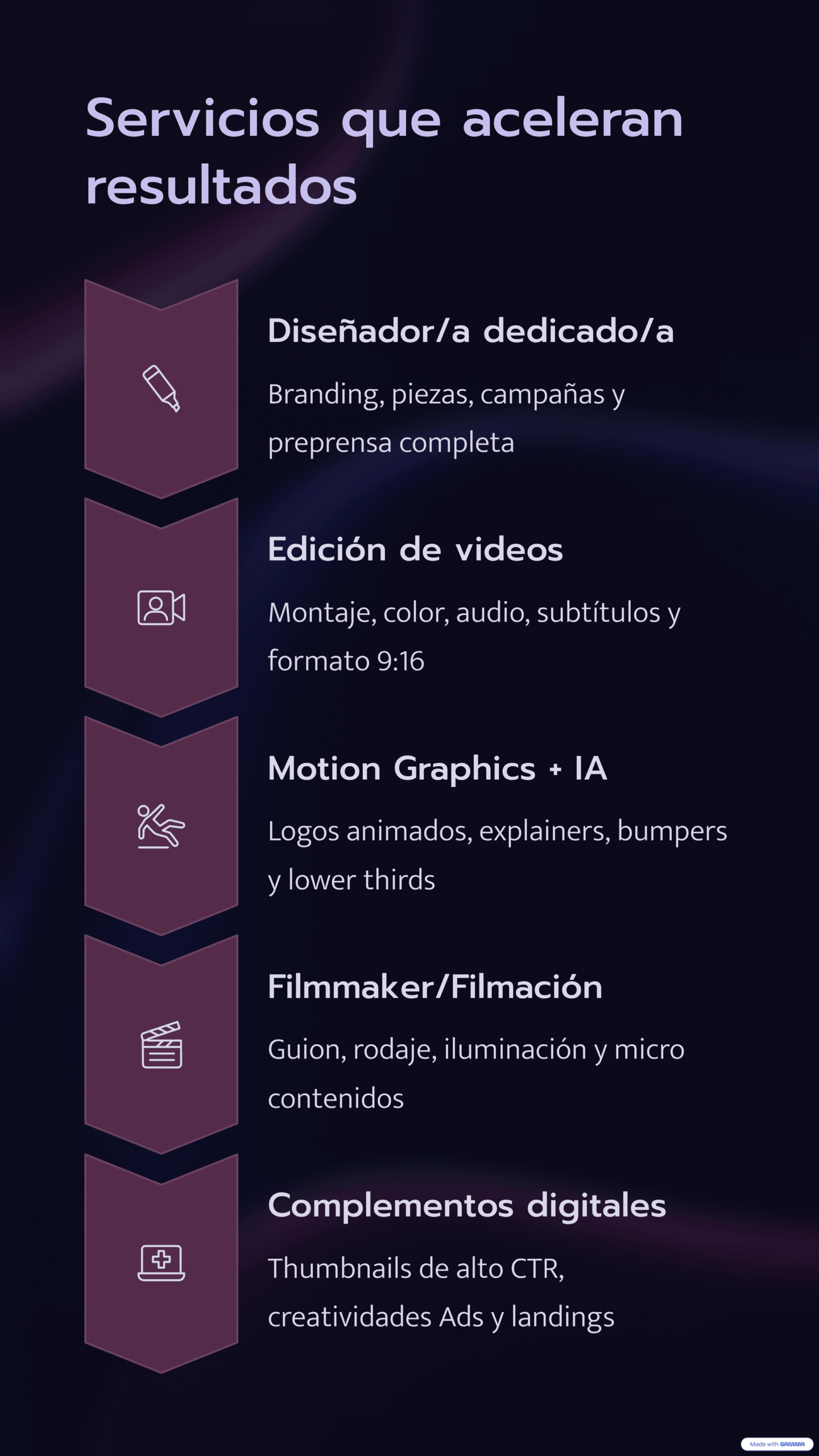 combinamos pensamiento creativo, sistemas con IA para que cada pieza del logo al último frame de un reel— haga una sola cosa: impulsar tu negocio.